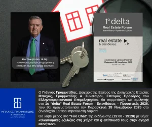 Yanos Gramatidis will participate as a speaker in the 1st “delta” Real Estate Forum | Investments – Prospects 2026, which will be held on Friday, 28 November 2025, at the Larissa Imperial Hotel in Larissa, Greece. - Ο Γιάννος Γραμματίδης στο 1ο “delta” Real Estate Forum | Επενδύσεις – Προοπτικές 2026