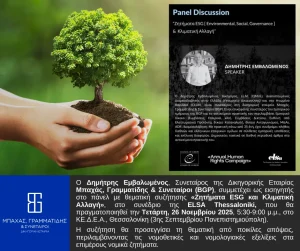 Ο Δημήτρης Εμβαλωμένος συμμετέχει ως εισηγητής στο πάνελ με θεματική συζήτησης «Ζητήματα ESG και Κλιματική Αλλαγή», στο συνέδριο της ELSA Thessaloniki.