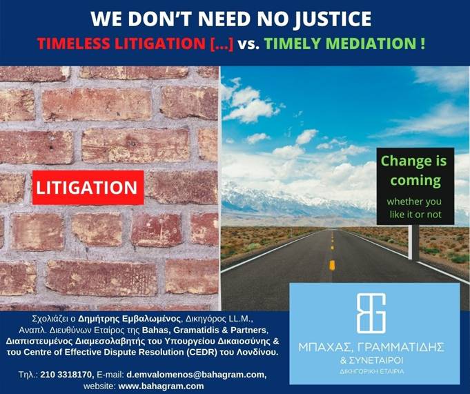 Σχολιάζει ο Δημήτρης Εμβαλωμένος, Δικηγόρος LL.M., Αναπλ. Διευθύνων Εταίρος της Δικηγορικής Εταιρείας Bahas, Gramatidis & Partners (BGP), Διαπιστευμένος Διαμεσολαβητής του Υπουργείου Δικαιοσύνης & του Centre of Effective Dispute Resolution (CEDR) του Λονδίνου.